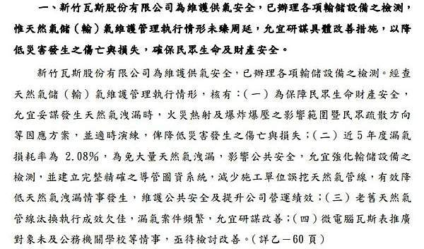 此外,竹瓦也提高簡易整壓站設施檢測及保養頻率對於減壓設備零組件,例如濾清器濾芯、減壓閥墊片或橡皮環、遮斷設備、調壓閥等零件,由每年施作1次增加頻率為2次,外部檢查由半年1次增加為每季1次以降低意外發生機率。