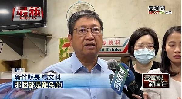 新竹地方法院6日開準備庭,此案被告的新竹縣長楊文科(右)開庭後接受媒體訪問表示,他尊重司法並相信法院會公平審判,還他清白,他絕對沒有違法圖利。(中央社)