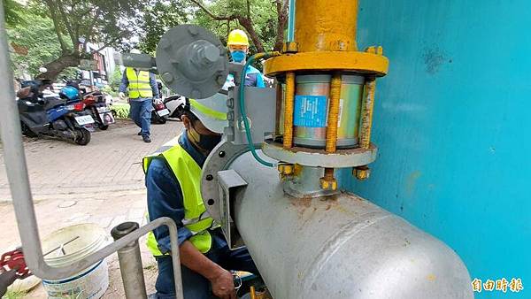 新竹瓦斯公司總經理邱世昌指出,竹北市中正國小旁簡易整壓設備軸流閥出現異常,無法將中壓壓力轉降為低壓輸送至用戶端。圖/新竹瓦斯公司提供