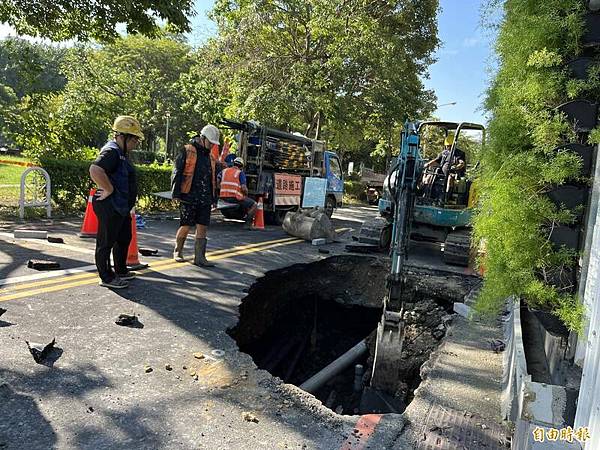 縣府表示,路基掏空現場就在8月中、縣府對面「小天坑」旁不過5、 6公尺遠,靠近光明6路口處,獲報當下就懷疑是「小天坑」發生時該處也有掏空現象,只是直到今天傍晚才因瓦斯外洩而爆發。