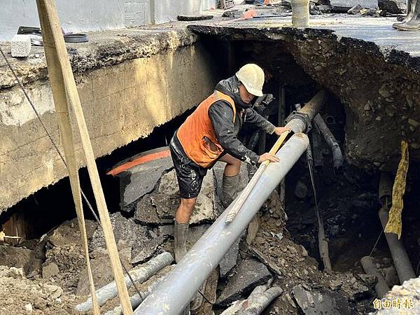 昨天下午4點多,工人發現地下室有土石流入,加上空氣散發濃濃瓦斯味,緊急通報竹縣府,同時通報管線單位。台水公司立即關閉該區供水,掏空情況才止住;瓦斯公司也緊急封閉該管線供氣。