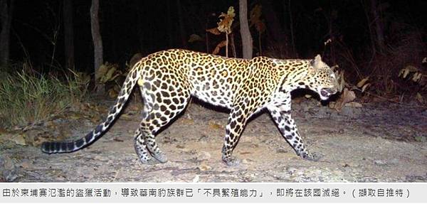 由於柬埔寨氾濫的盜獵活動,導致華南豹族群已「不具繁殖能力」,即將在該國滅絕。(擷取自推特)