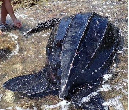 擱淺革龜粗估115公分、體重130公斤。(居民洪先生提供)