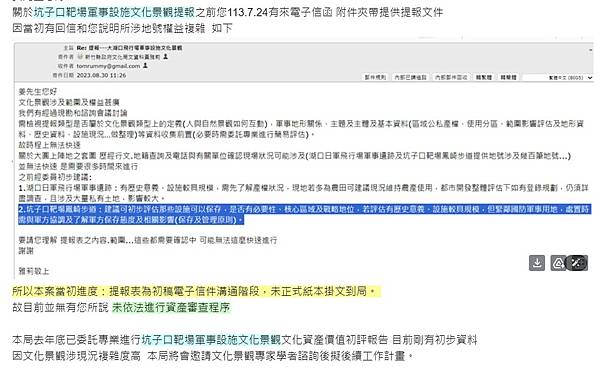 軍方也將地主意見向國防部反映,正爭取有條件開放利用。
