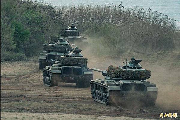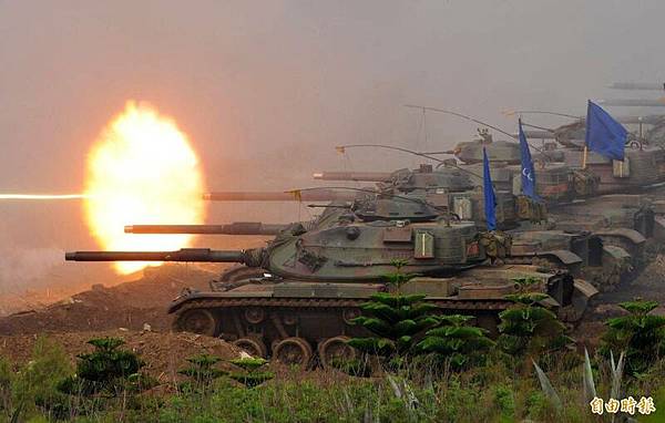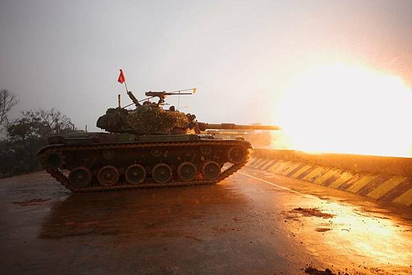 M60A3戰車為我國陸軍現役的裝甲部隊主力。圖為軍方數十輛M60A3戰車在漢光演習期間,於澎湖五德快速集結,對敵軍目標進行猛烈攻擊,現場火砲四射丶震撼力十足。(資料照)