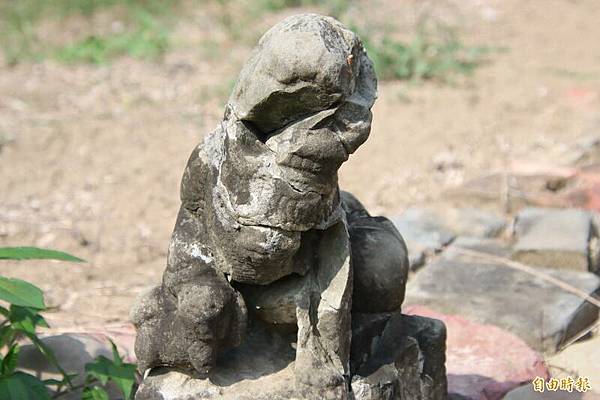 黃奠邦古墓被毀損的石雕像。(記者林宜樟攝)