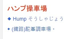 ハンプ操車場 | hump そうしゃじょう, (鐵路)駝峯調車場。 是什麼意思?-日文字典,日文中文(繁體)字典 Mazii