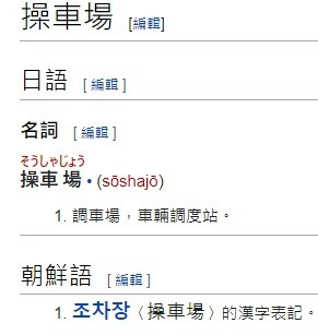 在英語中,使用“yard”一詞,意思是用於車間等的空地, “train”有時也稱為 “ trainyard” 。 操車場 - 維基詞典,自由的多語言詞典