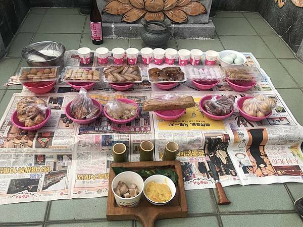 萬巒公墓這場祭祀非常特別,供品除了漢人的三牲四果、紅龜粿、年糕及菜頭粿,還有排灣族的吉拿富、芋頭乾,原來,陳家先祖陳毓芝300年前入贅萊睞家族,與二公主Badagau結婚,在萬巒、潮州一帶開創約1500公頃基業,成屏東平原中心的主要發展地區。