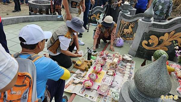 今天是清明節,屏東萬巒鄉有場別開生面的祭祖儀式,由河洛人家族(吳)陳宗親會與來義鄉丹林村頭目Rairai家族跨族共同祭拜300年前原漢聯姻的「嘉禮媽」Badagau公主。(謝佳潾攝)