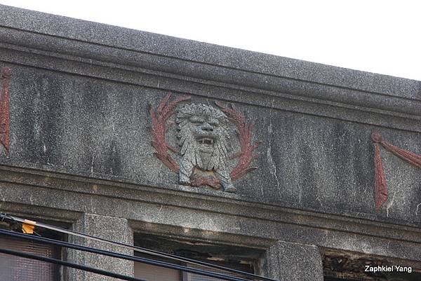除此之外,整棟建築物最引人注意之處,在於門面牌樓正中的獅子雕飾