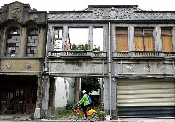 漂亮的巴洛克立面還在,後面的屋子早早拆得光溜溜的雜草漫生;緊閉的大門,花玻璃拼貼成一付多彩窗櫺;中藥房招牌牢牢與山牆合一,推開門,卻是一間名不符實的小吃麵店。時光交疊著,古城老得快,卻來不及跟隨世道拋棄過往,它的老樣子,看起來卻如此迷人。
