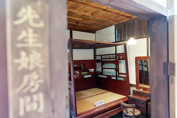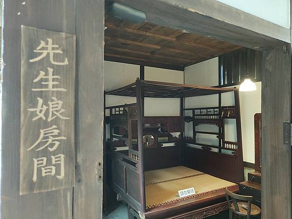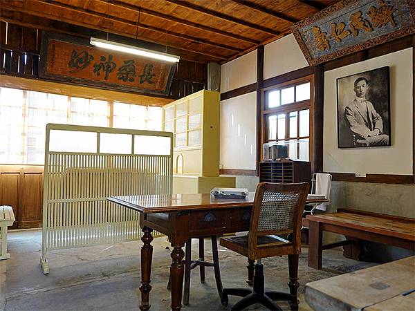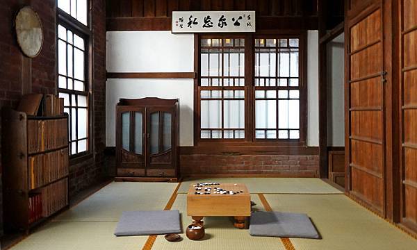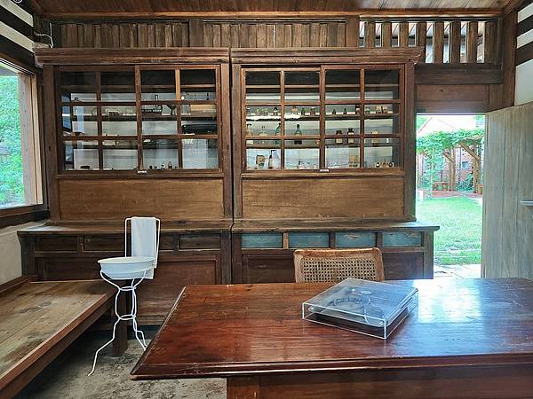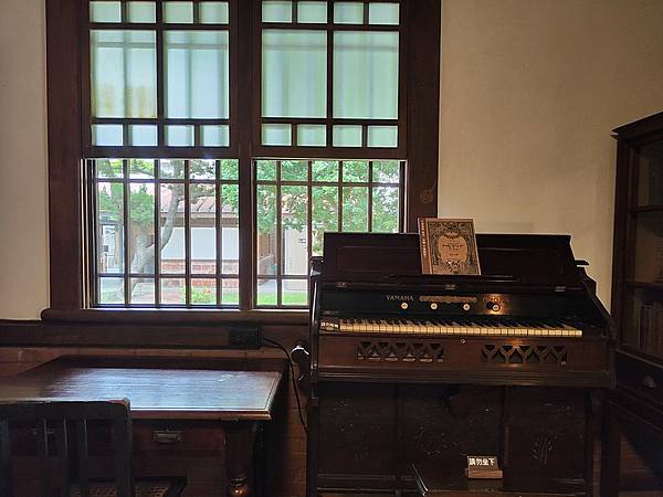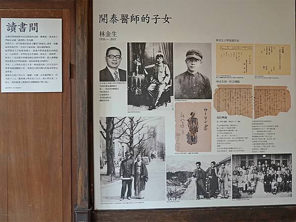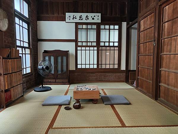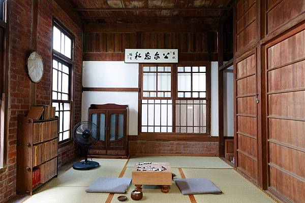 入口處「診療所」完整呈現林開泰醫師當年的看診情境而「大廳」則掛滿林維朝與林開泰的書畫,其中,我印象最深刻的為「榻榻米間」。根據現場說明,「榻榻米間」為「男生宿舍」,是男孩子的床鋪、也是過年團聚時兒孫的大通鋪;九十多年歷史的風琴是開泰夫人的嫁妝,也為家族帶來音樂與歡愉;書櫃裡的藏書,也見證了思想的啟蒙;而和室中央上方「公爾忘私」四字,為維朝公題寫勉勵「忘卻個人得失,全心為眾人謀福利」,也成為後代的精神指標。