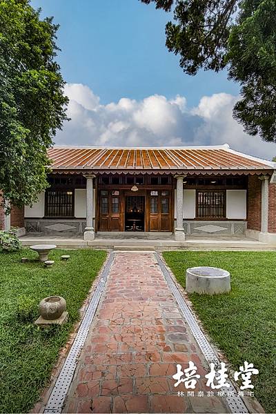 培桂堂為坐北朝南三開間,為防潮以紅磚墊高,前廊表層鋪上磨石子地坪,前緣一對洗石子廊柱,頂端仿希臘式多立克柱頭,建築以閩、日、洋共構美學,或許這樣才能孕育出國際舞蹈大師林懷民老師這樣的後代。