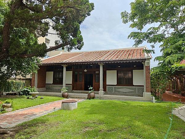 建築特色/坐北朝南的三開三間建築,結合閩式,日式和西式元素,反映日治時期台灣建築潮流。前廊表層鋪上磨石子地坪,前緣一對洗石子廊柱,複合式的 柱礎,頂端是仿希臘式的多立克柱頭。所有房舍沒有任何裝飾,紅磚紅瓦,原木白牆,樸素淡雅。