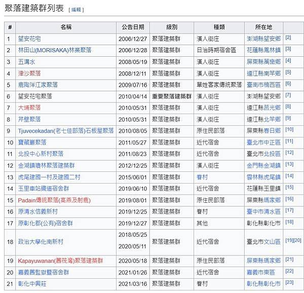 就已登錄之聚落中擇其保存共識及價值較高者,其級別為重要聚落建築群,其它者唯一般聚落建築群。中華民國文化資產聚落建築群類 - 維基百科,自由的百科全書 https://bit.ly/3TMPkG6