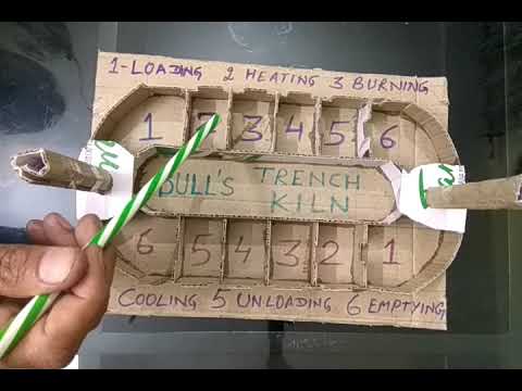 霍夫曼窯是一個由主火道兩側的幾個小室包圍的結構。每個房間都包含一托盤磚塊。主消防通道設有消防車,可撲滅持續燃燒的火焰。每個房間都會燃燒特定的時間,直到磚塊完全玻璃化,然後消防車被帶到下一個房間進行燃燒。 每個房間都通過一條通道連接到另一個房間,通道輸送來自火的熱氣體。通過這種方式,最熱的氣體被引導到當前被點燃的房間中。然後氣體流入相鄰的房間,接下來將被點燃。氣體在那裡預熱磚塊。當氣體通過窯爐迴路時,熱量會在磚塊被預熱和乾燥時傳遞到磚塊上,從而逐漸冷卻氣體。這本質上是一個逆流熱交換器,可以非常有效地利用熱量和燃料。這種效率是霍夫曼窯的主要優勢,也是它獨立開發並在歷史上繼續使用的原因之一。除了通向消防通道的內部開口外,每個房間還有一個外門,通過該門將最近燒製的磚移走,換上濕磚,乾燥,並在下一個燒製週期中燒製。增加。 在經典的霍夫曼窯中,火會燃燒數年甚至數十年。在伊朗,仍然有一座活躍的窯爐,已經工作了35年。霍夫曼窯可以使用任何燃料,包括汽油、天然氣、重油和木材燃料。典型霍夫曼窯的尺寸各不相同,但平均約為 5 m(高)x 15 m(寬)x 150 m(長)