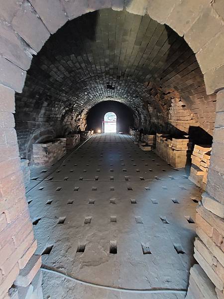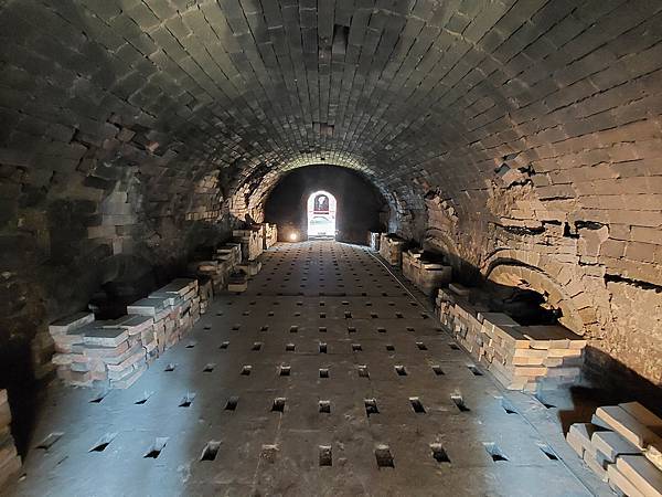 「聯福磚窯」殘長近100公尺,寬6公尺,現存9處圓拱形窯門,窯爐一側已經崩塌,斷面可見窯爐「中央通風道」與「煙道結構」,非常難得,窯爐旁高聳的水泥結構煙囪,保存相當完整。