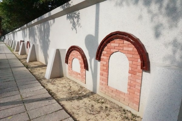 水利處在堤壁上用陶版雕塑出窯場風景,搭配仿岩磚創造立體效果,採用真石漆,讓窯場景色更立體和生動。堤壁位於松河街(成功路一段36巷至南港路3段80巷),長度200公尺,面積800平方公尺,目前已完工。