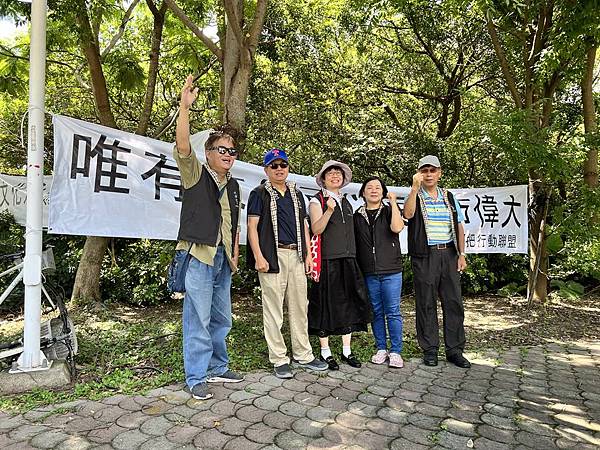 竹市府文化局啟動地下油庫啟動文資審議程序,11日上午安排8位文資委員到地下油庫現勘,竹掃把行動聯盟成員王俊秀、潘國正、陳明河、蔡榮光、鍾淑姬等人則在外頭,拉起寫上「唯有文化可以使城市偉大」的布條聲援。
