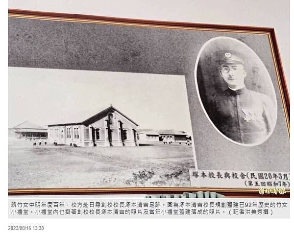 新竹女中明年慶百年,校方赴日尋創校校長塚本清吉足跡。圖為塚本清吉校長規劃蓋建已92年歷史的竹女小禮堂。小禮堂內也掛著創校校長塚本清吉的照片及當年小禮堂蓋建落成的照片。(記者洪美秀攝) 新竹女中92歲小禮堂提報市定古蹟 文資會明會勘審查 - 新竹市 - 自由時報電子報
