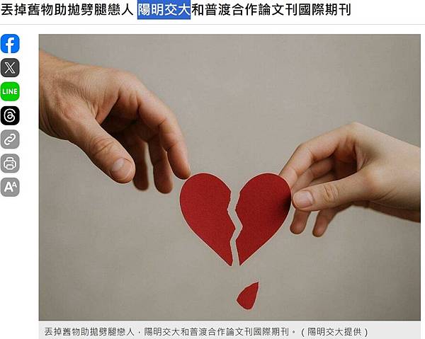 2025/07/10 10:49丟掉舊物助拋劈腿戀人 陽明交大和普渡合作論文刊國際期刊 - 生活 - 自由時報電子報