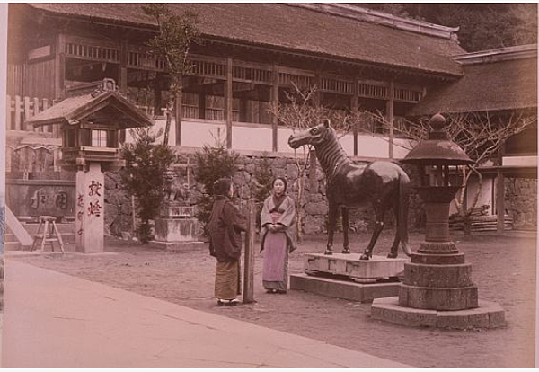 十九世紀攝影術和現代印刷方法傳入日本,導致浮世繪木刻版畫的受歡迎程度下降。木版畫中已知的主題被攝影所採用,以前使用彩色印刷版的工匠運用他們的技能,在蛋白照片上小心地添加顏色。