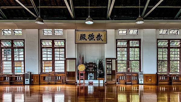 日治時期所建的武德殿其空間配置有相當的一致性,道場中央的「神龕」為儀式、活動的中心,左側(東邊)為劍道區,右側(西邊)為柔道區。