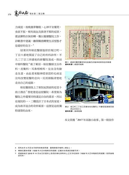 分別為鹽埕最後一棟由日人與台人開設的醫院建築,在帖佐醫院已獲保留後,是否能許友松醫院一個未來?希望產權人可以與公部門一起嘗試努力,讓這土地上交織過的台日文化,各自留下時代的見證,在鹽埕的街角持續耀眼好幾個世代 高雄市歷史建築「堀江町日式街屋」修復及再利用計畫 - GPI政府出版品資訊網