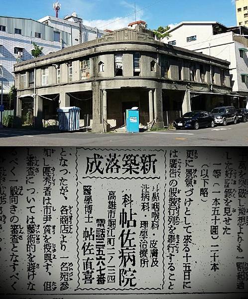 日治時期台灣總督府前醫官帖佐直喜氏,在當時高雄堀江町開設帖佐醫院啟動招標修復,高市府將耗資超過4400萬元保存日治繁華街屋特色。