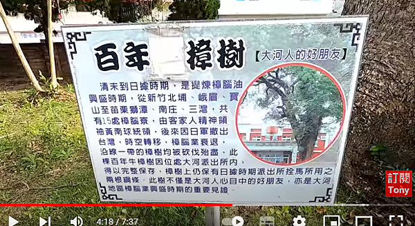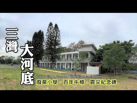 昭和10(1935)年新竹-台中地震,震央在苗栗關刀山附近,又名關刀山大地震,三灣鄉的大河村死傷慘重,罹難71人,屋舍全毀。為了紀念亡靈,地震後滿三周年時,在大河警察官吏派出所建立「震災慰靈碑」。日治時期大河國小師生在地震紀念日以日本祭拜神社的方式,行禮致意。沿襲至後來每年農曆3月19日由村長前來慰靈碑祭拜,成為每屆村長交接時的首要任務。原址在派出所左方小山丘上,於1979年遷移至現址。另外,慰靈碑旁有一牛樟樹,樹圍有4公尺多,歲數有百年以上,是大河地區樟腦業興盛的證據。大震災大河底慰靈碑-文化部國家文化記憶庫 https://bit.ly/3PGxZgS