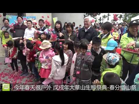 「春分惜山祭」由縣長李進勇主祭,並帶頭唸祝禱文,隨後與古坑鄉長黃意玲、華南實驗國民小學校長陳清圳及社區居民、學童將花撒向天空,感謝天地給予的一切。
