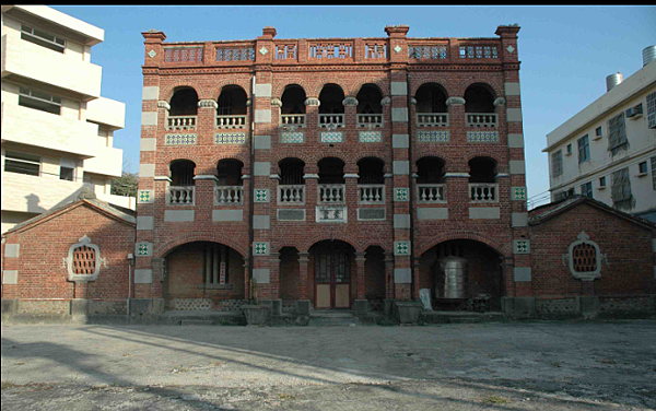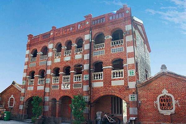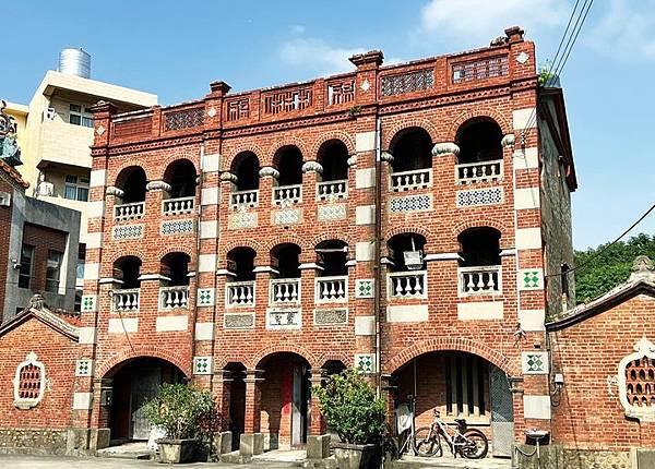 以拔高顯眼的三層磚造洋樓做門面,