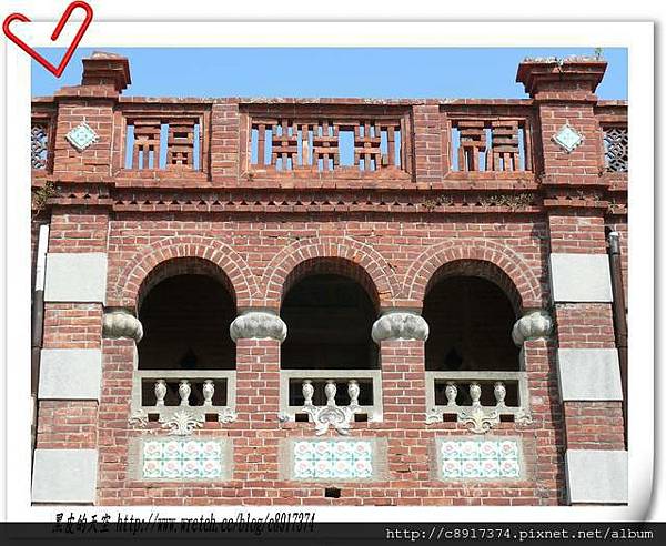 ↑大安中庄黃宅的三樓樓頂女兒牆上『福.壽.祿』磚花。還有磁瓶欄杆、面磚裝飾真是經典傑作。