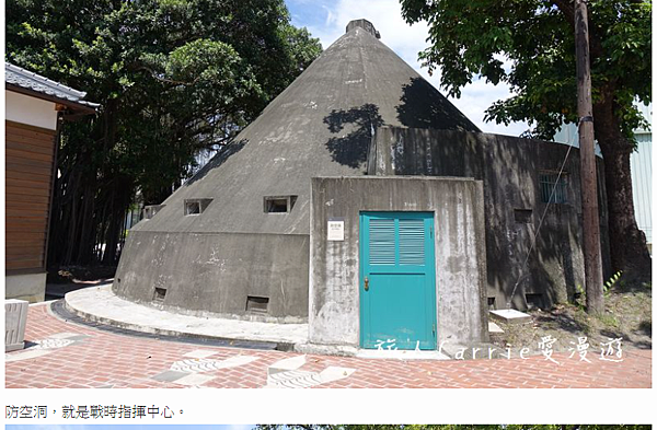 有著尖錐外型的「戰時指揮中心」,位於園區西北側,建於1943年太平洋戰爭時期,為因應美軍空襲的防空避難設施,鋼筋混凝土構造。原為圓形外觀,國民政府遷台後,1957年因應國共內戰才又增建外圈結構及通風設備,形成外觀特殊的尖錐形,目的在於避彈。