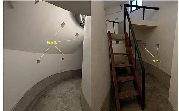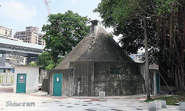 屬於國定古蹟本體之一,始建於1943年太平洋戰爭時期,為因應美軍空襲的防空避難設施,鋼筋混凝土構造,原為鐘形外觀,1957年增建外圈結構及通風設備,外觀上成為特殊的尖錐形。