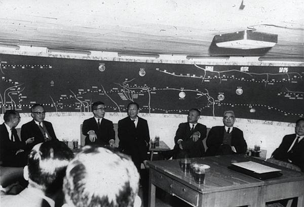 有趣的是,這裡雖名為「戰時指揮中心」,卻沒有真的在戰爭時使用過,1960年代以後僅有演習時有人員進駐演練。核心幕僚進駐的地上層,留有一面由國民政府引進,採用美軍方格座標(MGRS)的台海地圖,專供高級長官使用的地下層更有環繞圓型壁面,上有1970年代左右的全台鐵路路線圖,以及各地橋梁、河川、隧道等重要資訊。彎腰走進洞內充斥宛如戰爭片的空間,緊張氛圍,油然而生。