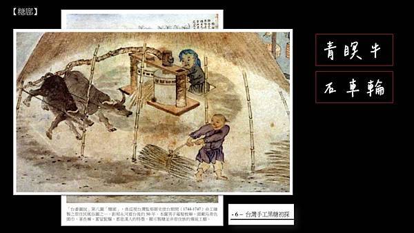 盧泰康提到,從荷治、明鄭到清代等時期,台灣都是手工技術製糖,無論榨製紅糖的糖廍、精製白糖的糖間,會有漏罐、藁座等生產器具的需求,帶動了窯業。
