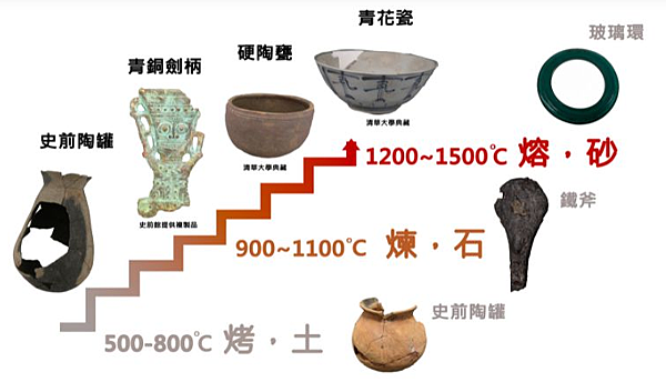 臺灣史前遺物與燒成溫度相對關係示意圖。(圖/鍾文寧)