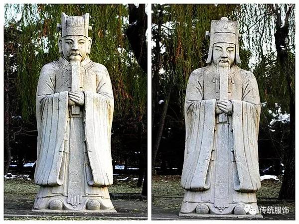 隨後,明朝開始了大規模的北伐,將元朝重新趕回了蒙古草原。元朝對全國的統治結束以後,被稱為北元政權。明朝在制度方面,很大程度上沿用了元朝的模式。但是在服飾文化方面,則是重新使用唐宋時期的傳統,因此,出現了「日月重開大宋天」的說法。明朝的服飾文化逐步完善,按照《明史》的記載:「洪武二十六年定,一品至九品,青羅衣,白紗中單,俱皁領緣。赤羅裳,皁緣。赤羅蔽膝。方心曲領。其冠帶、佩綬等差,並同朝服。」