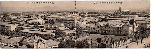 1910年,台灣總督府高等女學校(今北一女)全景。攝影者在台灣總督府(今總統府)高處往東南方拍攝,右下角的道路為今重慶南路,右上角的尖塔建築物是位於兒玉町(現南昌路)的台灣總督府專賣局(戰後變成台灣省公賣局,現為台灣菸酒公司總公司所在地)。