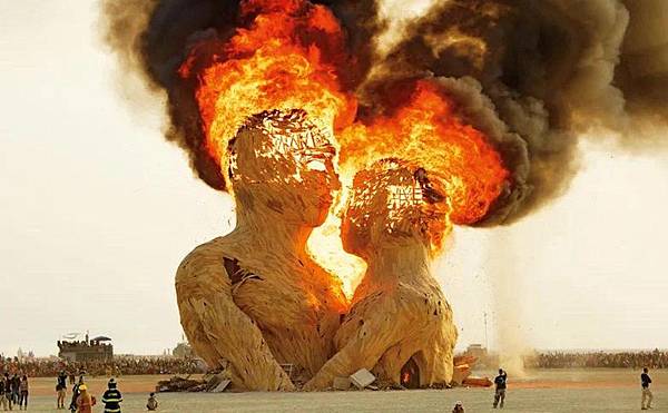 火人祭的緣起,追溯到 36 年前,創辦人 Larry Harvey 與 Jerry James 在舊金山的貝克海灘(Baker Beach),搭起了一個高 2 公尺多的木製人偶,並以慶祝夏至與哀悼一段逝去戀情的名義,將之燒毀。這個原本只是讓人好奇圍觀的活動,彷佛打開了人們共情能力的開關,一年年傳承了下去,並且越來越多人參與。