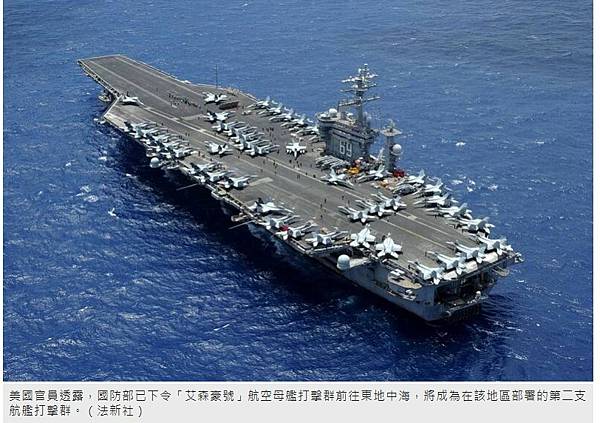 此外,白宮國家安全會議發言人柯比(John Kirby)11日稱,航空母艦艾森豪號(USS Dwight D. Eisenhower)很快就會按預定計畫抵達地中海,若有需要,第2艘美國航艦也可就位,表達美方對以色列的支持。福特號坐鎮!美最高將領布朗:沒有其他以色列對手會參戰 - 國際 - 自由時報電子報 https://bit.ly/3rGkhSi