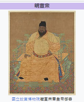 明宣宗朱瞻基(1399年3月16日[1]—1435年1月31日),或稱宣德帝,明仁宗嫡長子,永樂九年(1411年)立為皇太孫;永樂二十二年(1424年)十月立為皇太子。洪熙元年(1425年)即位,次年改元宣德,明朝第5位皇帝,在位十年,享年36歲。宣德元年(1426年)平定朱高煦之亂,和其父明仁宗一樣,比較能傾聽臣下的意見,聽從二朝元老兼閣臣楊士奇、楊榮、楊溥等建議,停止對交阯用兵,與明仁宗並稱「仁宣之治」,宣宗時君臣關係較為融洽,經濟也穩步發展。不過,他也開啟此後宦官干政的局面。
