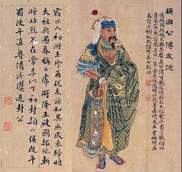 傅友德早年參加劉福通軍,隨李喜喜入蜀。後率部歸朱元璋,從徐達北伐。明太祖第二次北伐期間,七戰七勝平定甘肅。後與湯和分南北兩路取四川,以主帥之職平定雲南。以功封潁國公,封太子太師。後遭朱元璋猜忌,在殺死其兒子後,當著朱元璋的面自殺身亡。