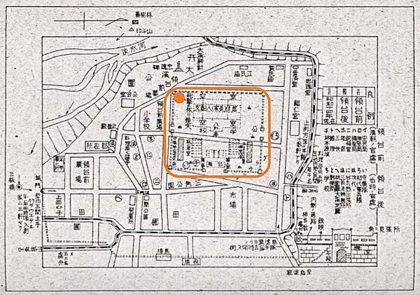 橘色框選處即為通議第的範圍,大致囊括現今的大溪國小和大溪綜合球場。取自大溪學文化資源網。圖/橘色框選處即為通議第的範圍,大致囊括現今的大溪國小和大溪綜合球場。取自大溪學文化資源網。