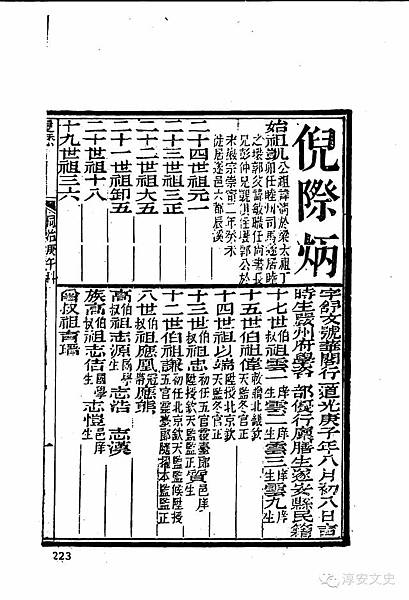 倪際炳,字舒文,號華閣,行一,道光庚子年八月初八日吉時生,嚴州府學咨部優行廩膳生,遂安縣民籍。