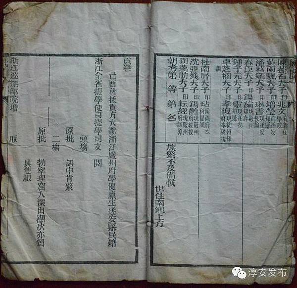 由此看來,近日發現的這冊貢試硃卷,就是遂安拔貢方大猷先生的硃卷。只可惜,由於保存不好,試卷部分只剩了一篇半八股文。不過,整體來說,這冊硃卷的前面部分:姓名、身份、籍貫,記載自己祖輩以及兄弟叔侄、妻室兒女,附載受業、受知師、巡撫院(貢院)的批註等都保存完好