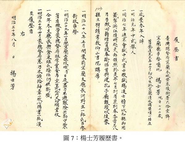 日本時代的硃卷-履歷書-進士-宜蘭楊士芳