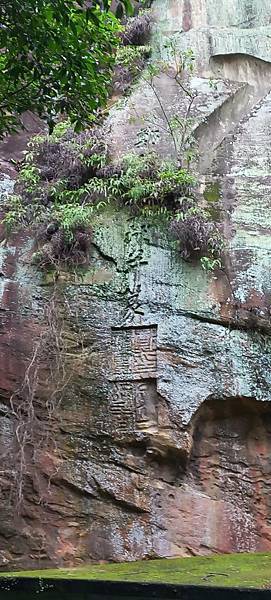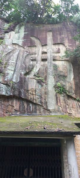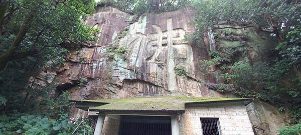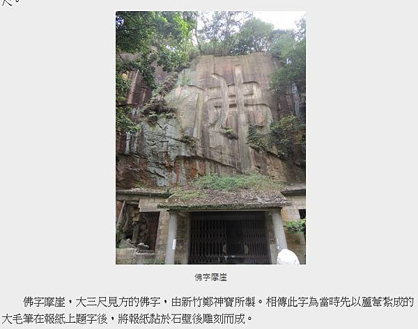 圓通寺-佛字摩崖,大三尺見方的佛字,由新竹鄭神寶所製。相傳此字為當時先以蘆葦紮成的大毛筆在報紙上題字後,將報紙黏於石壁後雕刻而成 https://bit.ly/47cWdpb